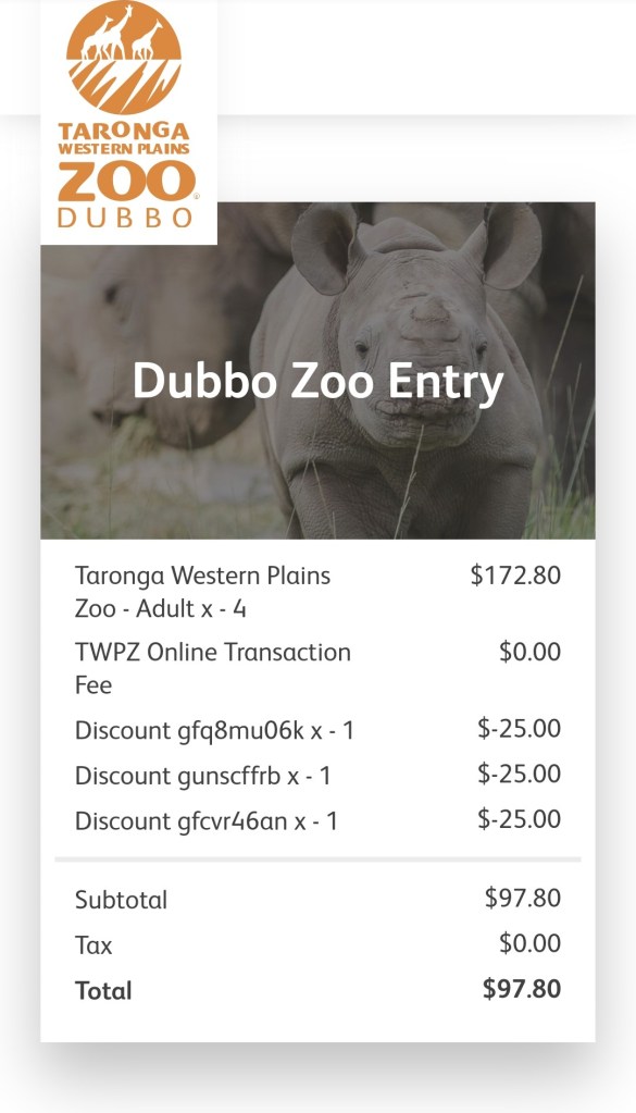 西塔隆加動物園的入園的門票一張是46澳幣,其實不算便宜,但是特別注意它是兩天的票! 如果一天沒看夠,隔天還可以再去。