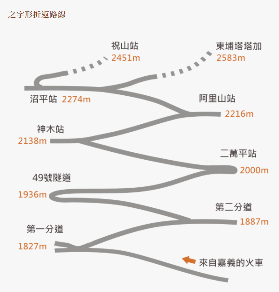 在介紹它之前,我們先來聊一下一種特殊的火車線。有搭過阿里山火車的朋友,應該對其知名的之字型線路不陌生吧!