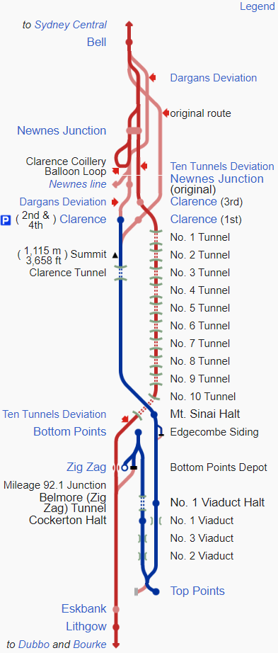 雖然這段鐵路成功打通了新州中西部的交通,但因為每輛火車都需要在Zig Zag站「進退」調頭,導致該站成為整條線路的瓶頸。因此在十多年後,政府決定開鑿山洞,建造隧道讓火車過了Zig Zag站後從隧道通行。在1910年隧道建成之後,這條線路和Clarence站也就不再繼續使用了。
