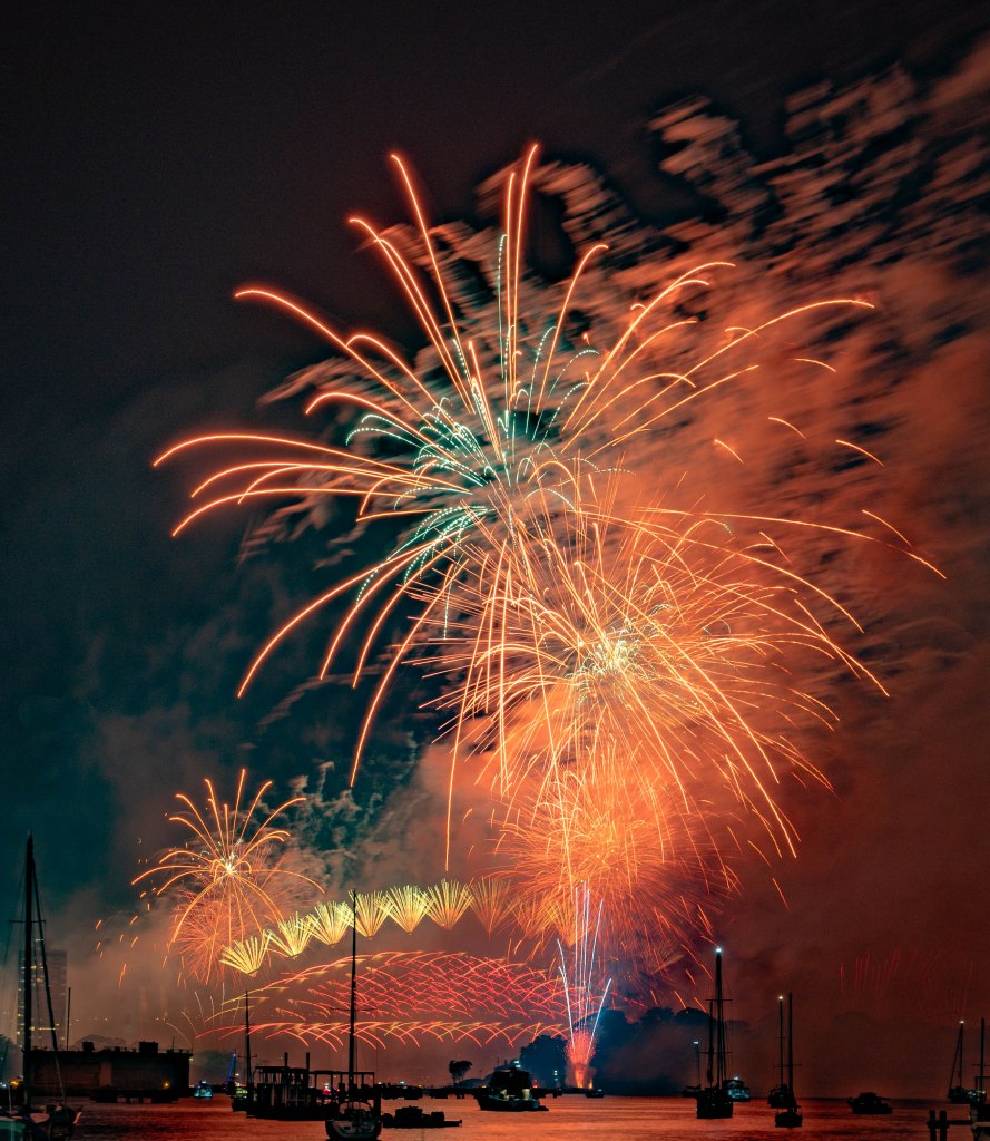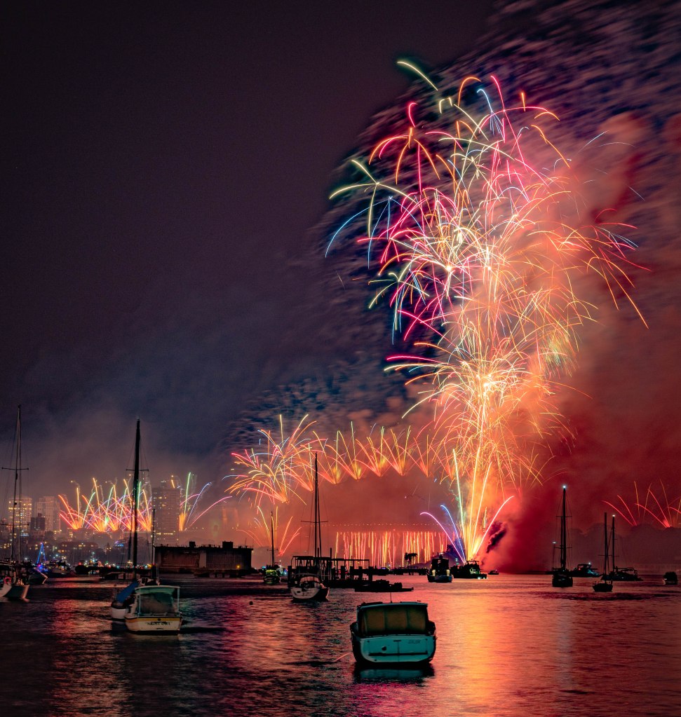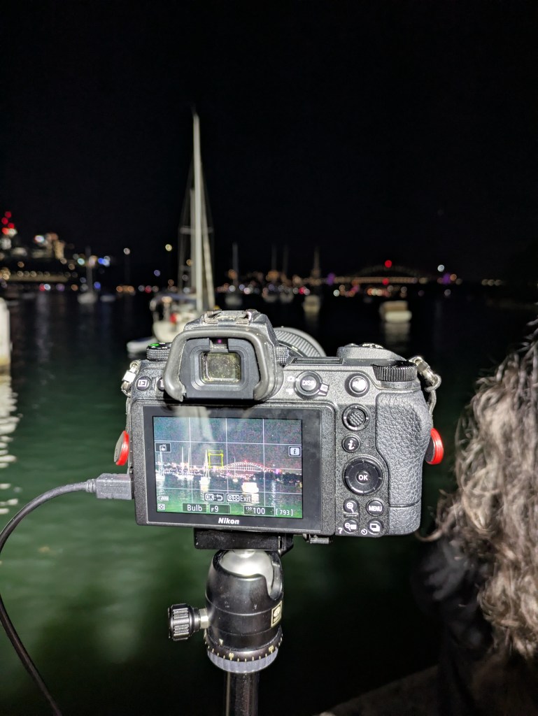 九點的煙火結束後,會有一部分人離開,如果要換機位的話,也可以那個時候調整。我們試了幾個不同的位置,後來決定還是在原本的地方不動。