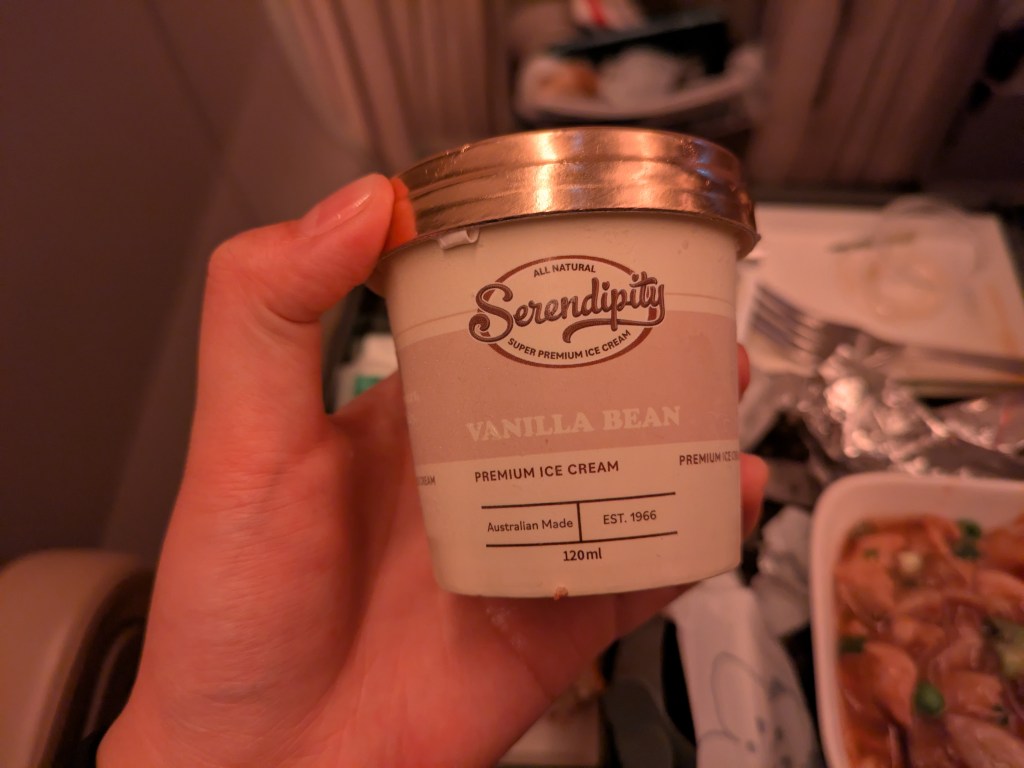 回台北的那班食物比較普,就不評論了,但是有冰淇淋!去年搭的時候沒有!
