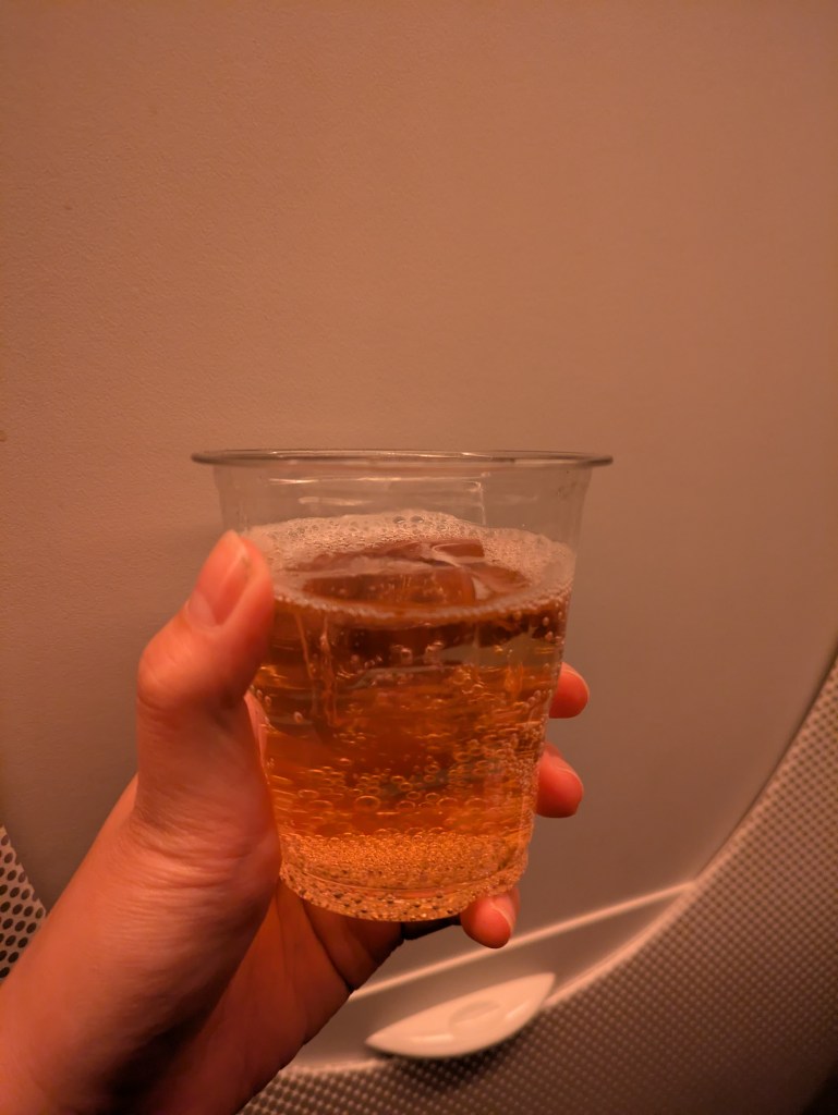 可以選蘋果汁柳橙汁或水,都是常溫的。回台北的那趟可能人比較少,起飛前就喝到了,但回雪梨的那班起飛一段時間才送上來