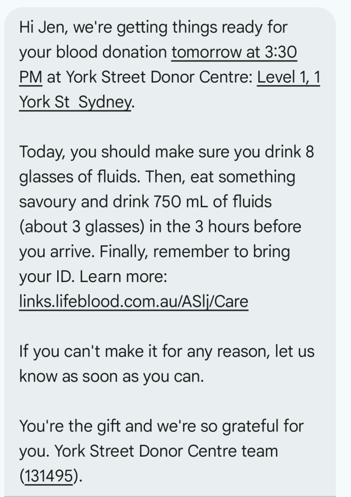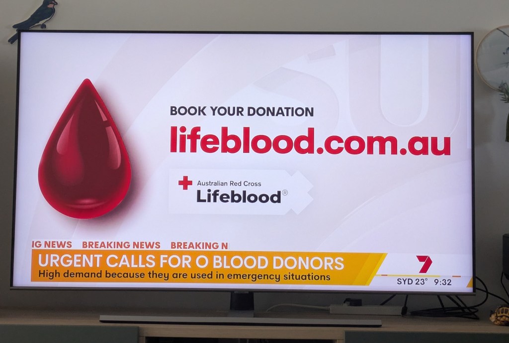 直到最近因為Bondi事件,再次在電視上看到呼籲民眾捐血的畫面,那個熟悉的Lifeblood紅色Logo出現在螢幕上,我突然有種「好像不能再拖了」的感覺。