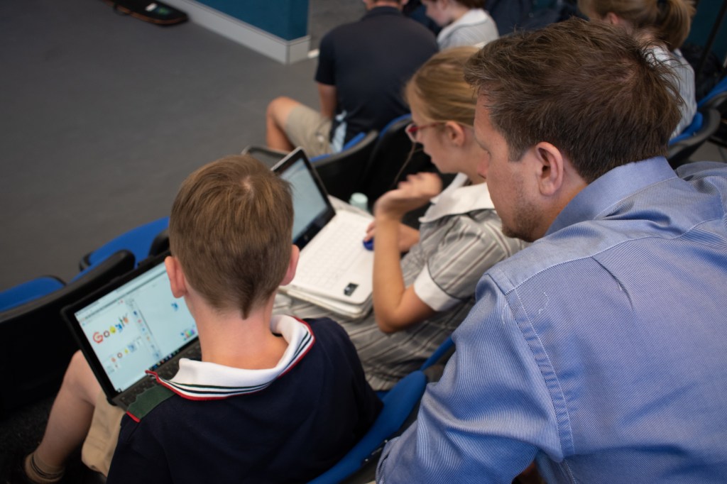 還好一切都比想像中順利。學生抱著電腦,認真做我們設計的挑戰題。有人做出來後興奮舉手示範,有人卡住就舉手發問,整堂課的互動比我預期熱烈很多。