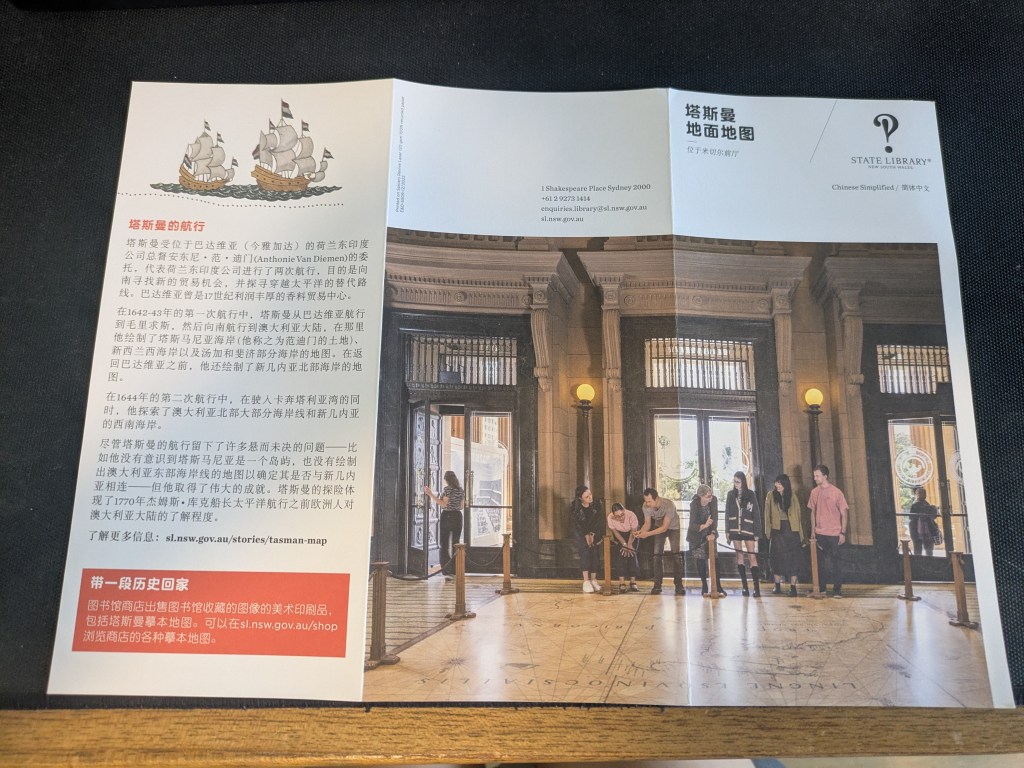 也因此,新州圖書館最負盛名的館藏之一,就是以塔斯曼1644年繪製的航海圖為藍本,打造而成的《塔斯曼地面地圖》。
