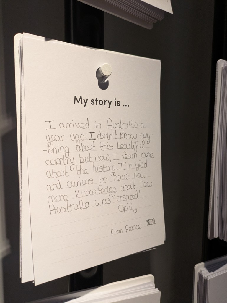 對我們這一代移民來說,來澳洲通常是自己查資料、辦簽證、做選擇;但對他們那一代人來說,踏上這片土地,其實是一場無法拒絕的流放。當我站在那個空間裡,看著一條條長條上的名字,突然有一種很強烈的感覺:我們同樣都來到澳洲,起點卻如此不同。